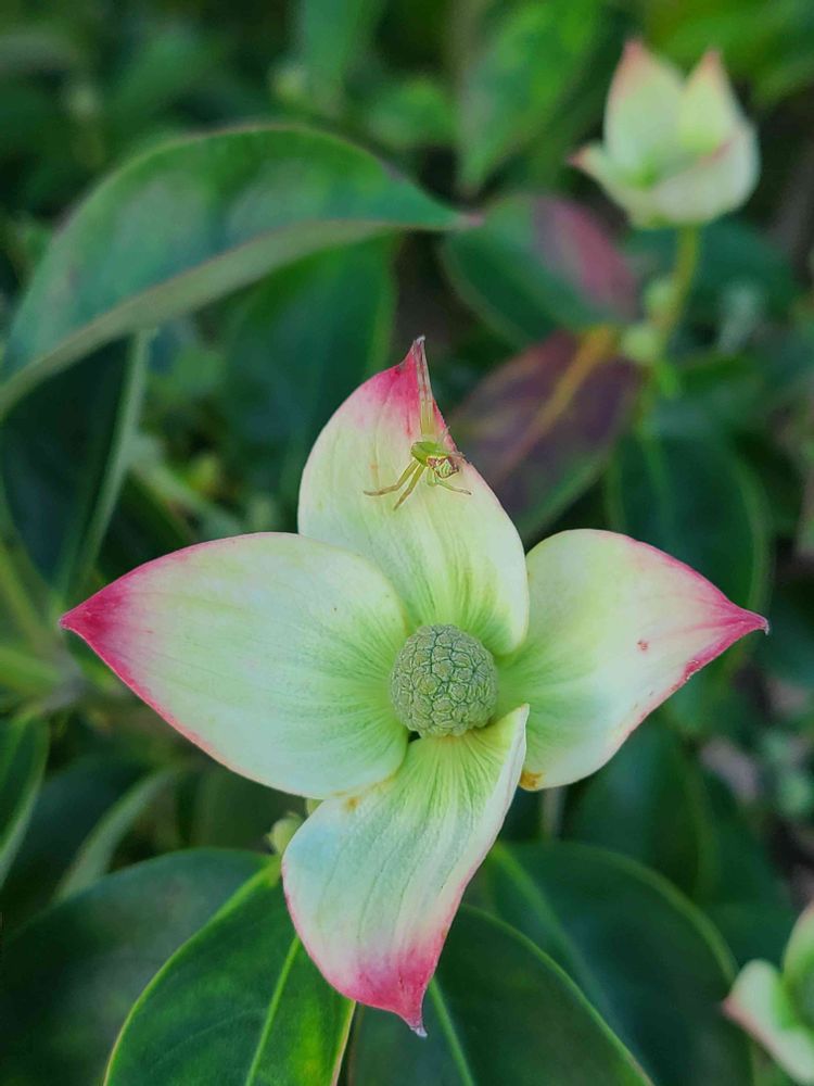ハナグモちゃんのアクロバットな、お姿可愛いね💖ヤマボウシも〜( ˊᵕˋ*)