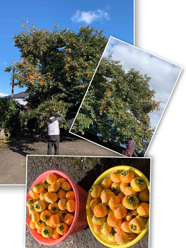 今日から柿もぎを開始した主人、上の方は脚立に登って…まずは干し柿用