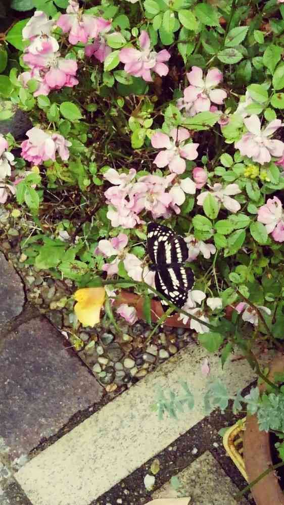 ミニバラに蝶がとまっていました