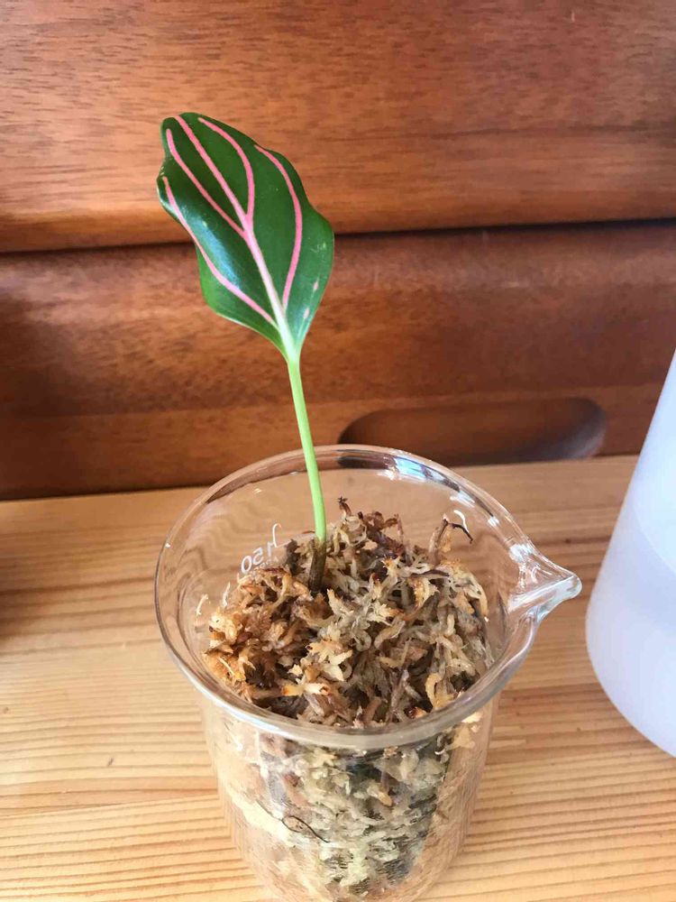 まだ葉が一枚しか出ていませんが、何枚か出てくるとイメージ的にはカラテア・サンデリアーナみたいになります。