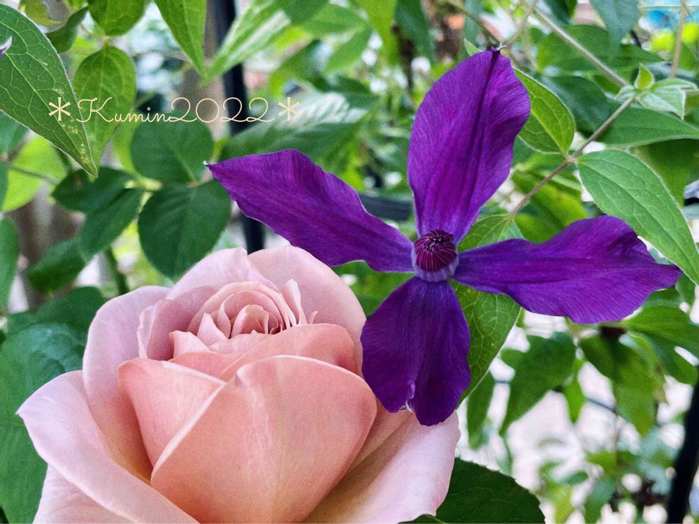 Kumin✿︎さんの小さな庭,バラ カフェラテ,クレマチスアフロディーテエレガフミナの投稿画像