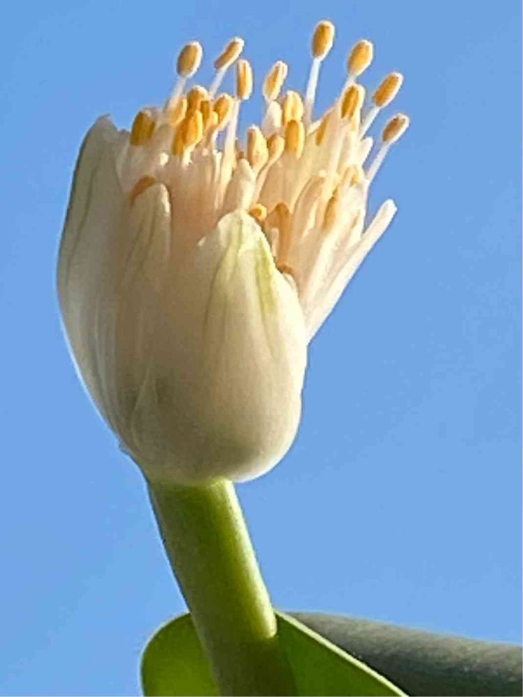 夏に葉っぱが痛み今も葉っぱは小さな一枚だけですが花芽が出てきて、開花しました🤗、もうダメかと思ってましたが 大変強い植物です🤔❣️。