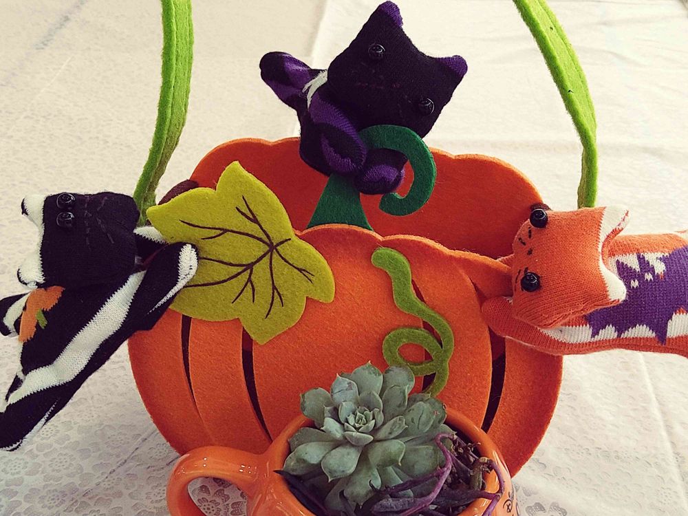 ハロウイン🎃柄の靴下で、3匹のネコを作ってみました🐾