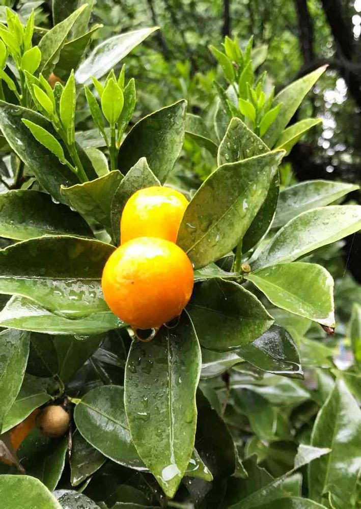 雨があがったので、出てみました。きれいに洗われた金柑がつやつやでした。毎日少しずつのビタミン補給です😊