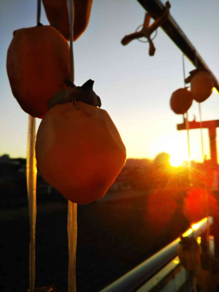 オレンジ🧡色の夕陽にオレンジ🧡色の干し柿😊