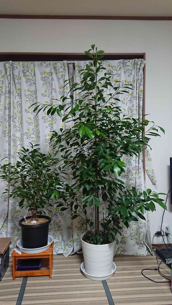 挿し木ガジュマルは うちの身長を越して 鉢底から180cmありますよ…。😓💧💧💧