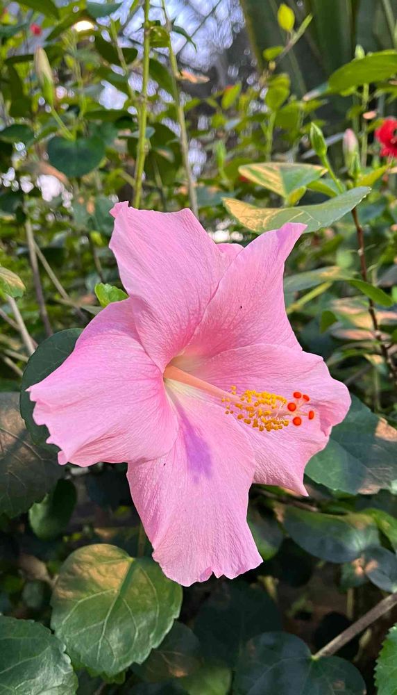 熱帯植物園の入り口から入ると、出迎えてくれました。ピンクのハイビスカス