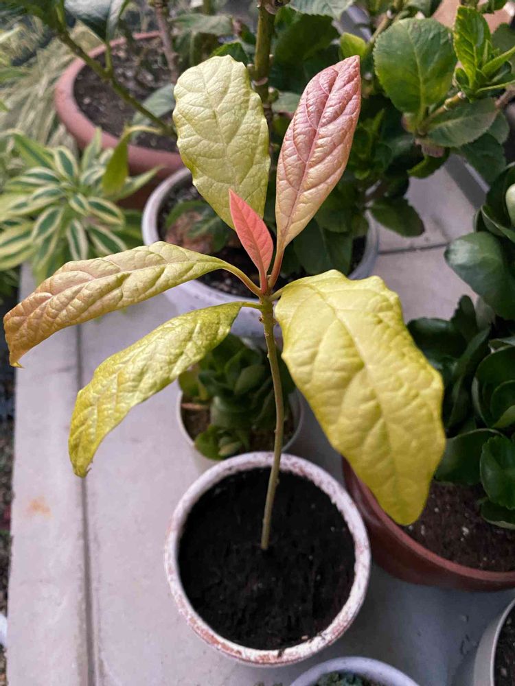 アボカドの鉢植えを外に出したら紅葉🍁⁈してきました✨