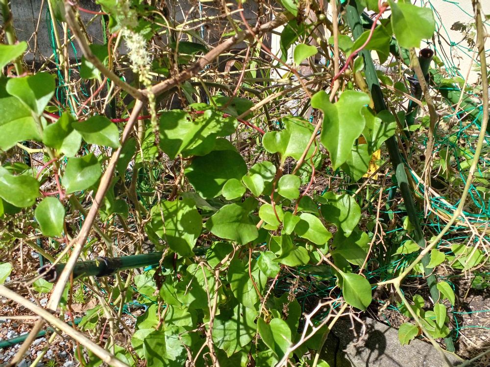 花壇に植えてたアイコトマトが終わり、そろそろ引っこ抜くかと思ってたらそこに丘ワカメが大繁殖し、トマトの枯れ株を撤去できなくなってしまいました。この丘ワカメ、葉をゆでると粘りがでて、栄養価が高いらしく、つる性でつぎつぎに増えるから食感が好きな人にはすごくいい野菜?ですよ~!基本ほっとけばいいし、、、。今もトマトの枝とネットや支柱を横取りして広がってます。