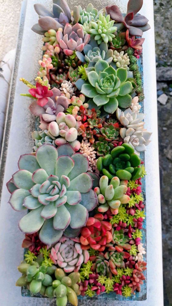 小さな庭,多肉植物 寄せ植え,吹雪の松❓とセダムの投稿画像