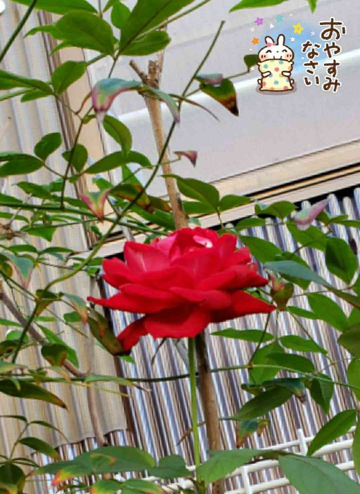 夕方、真っ赤な薔薇🌹がひっそりと、裏庭で咲いてました~🤭✌️気が付くのが遅すぎでーす。💓♥️❤️