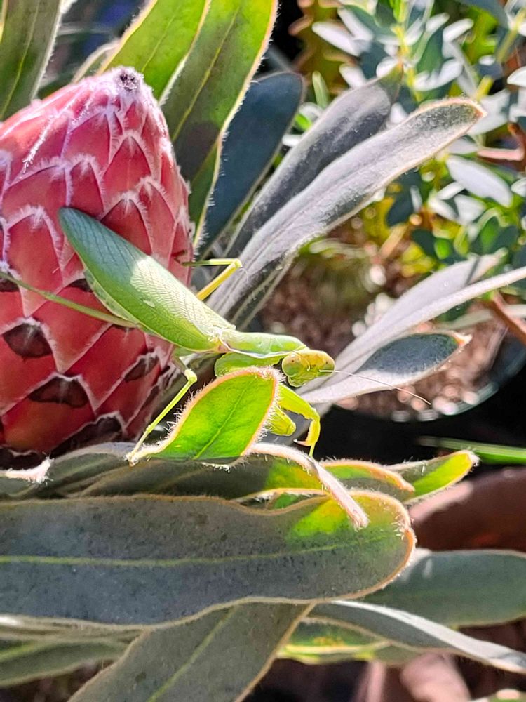 見事なキングプロテアの蕾と、カマキリ。