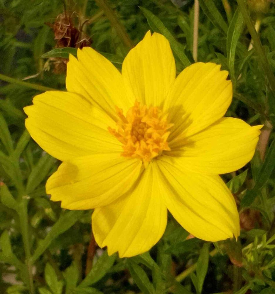 通りすがりの、とあるお店の花壇に咲いていましたキバナコスモスの花☺️