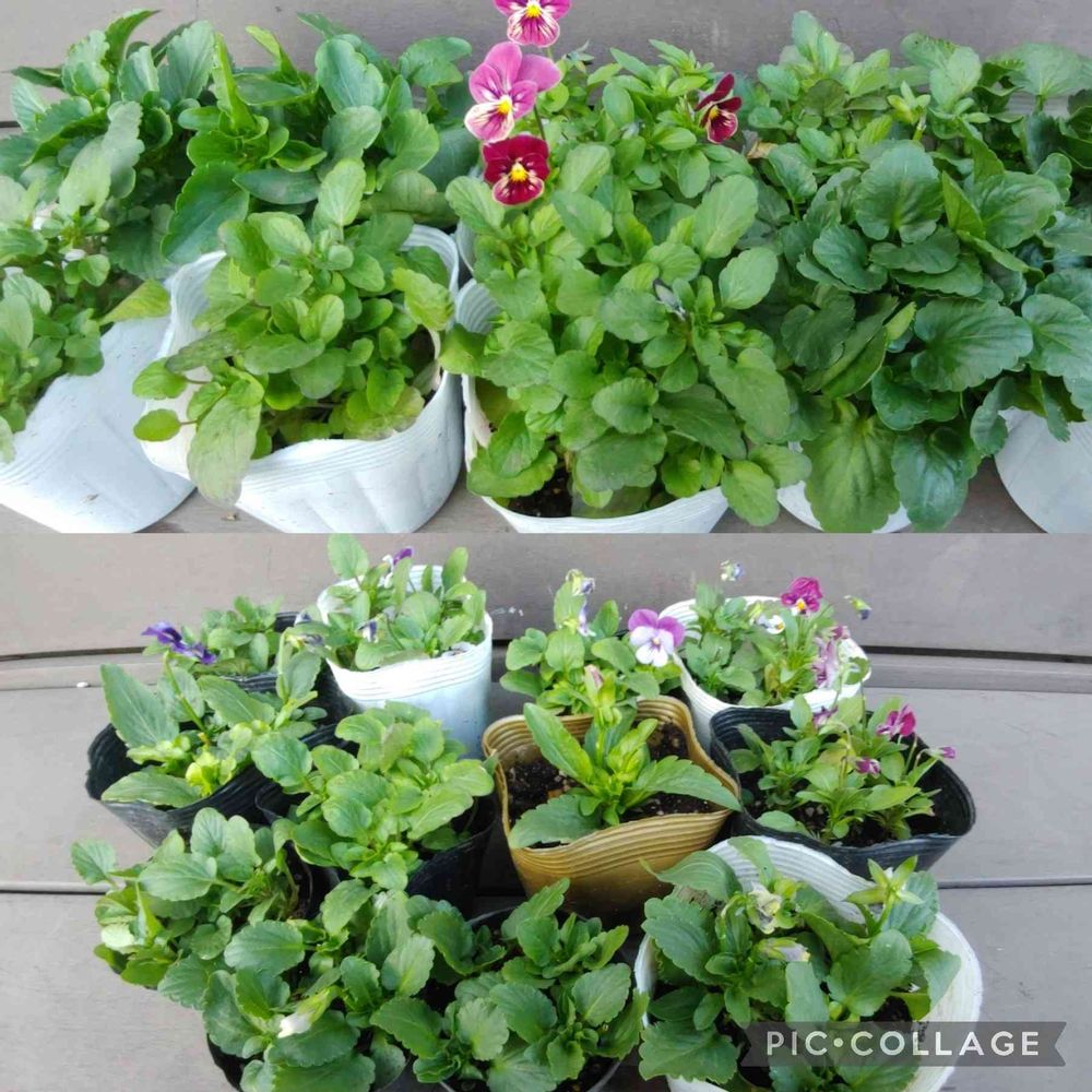 2週間前に買ったビオラ、パンジー10株。すぐ挿し芽をして50株の挿し芽。種まきもしていますが待ちきれずに。
