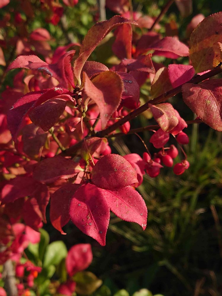 コマユミが、ずいぶん色づいて、鮮やかに染まりました。