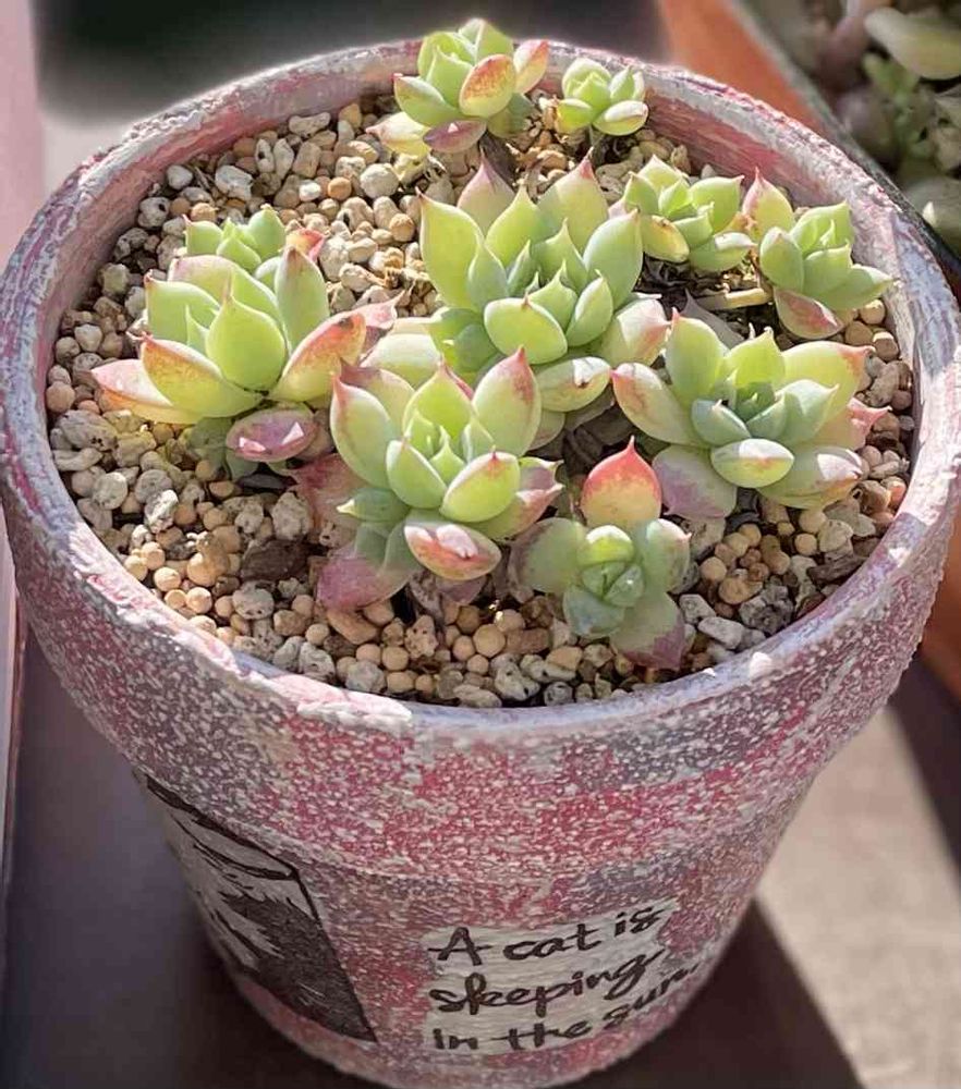 なんか小ぶりだけで、ぷくぷくでほんのりピンクで可愛いです💓リメ鉢は旦那が買ってきてくれました😅