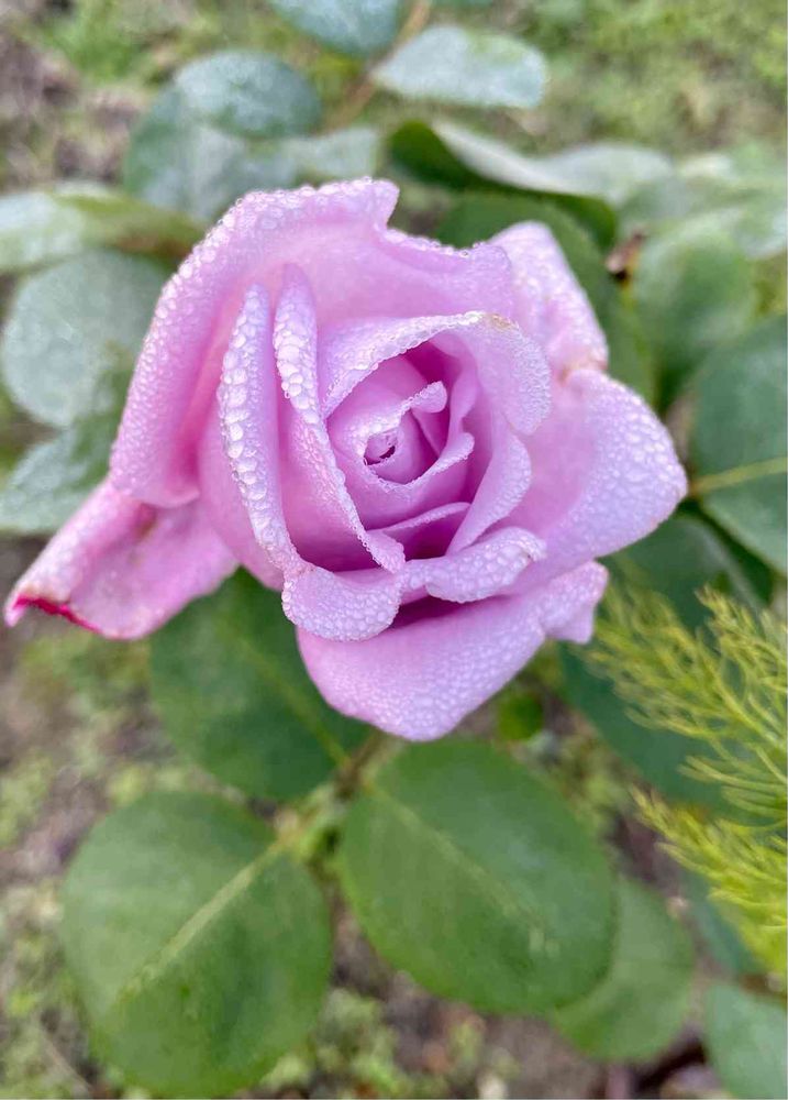 今日のバラ🌹🌹pic。今朝の霜で、花びらが微妙に濡れてる地植えのブルームーンさん