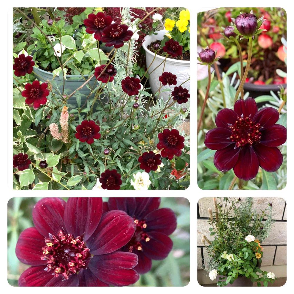 嬉しいコメントありがとうございます〜😆🎶初めてのチョコレートコスモス♡チョカモカ✨可愛いく咲きました✌️😊花色が濃いです🤎😅寄せ植えピッタリでした♪