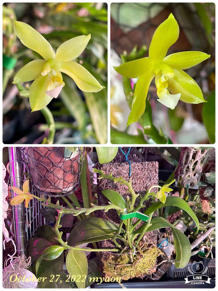 黄緑色のお花✨💛💚✨キレイですネ😍花茎の小さな出っぱりが蕾なのでしょうか?