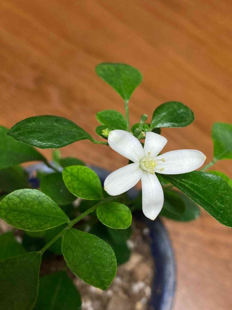 ミニ観葉として売られていたシルクジャスミン。一輪だけど花を咲かせてくれた✨(๑˃̵ᴗ˂̵)