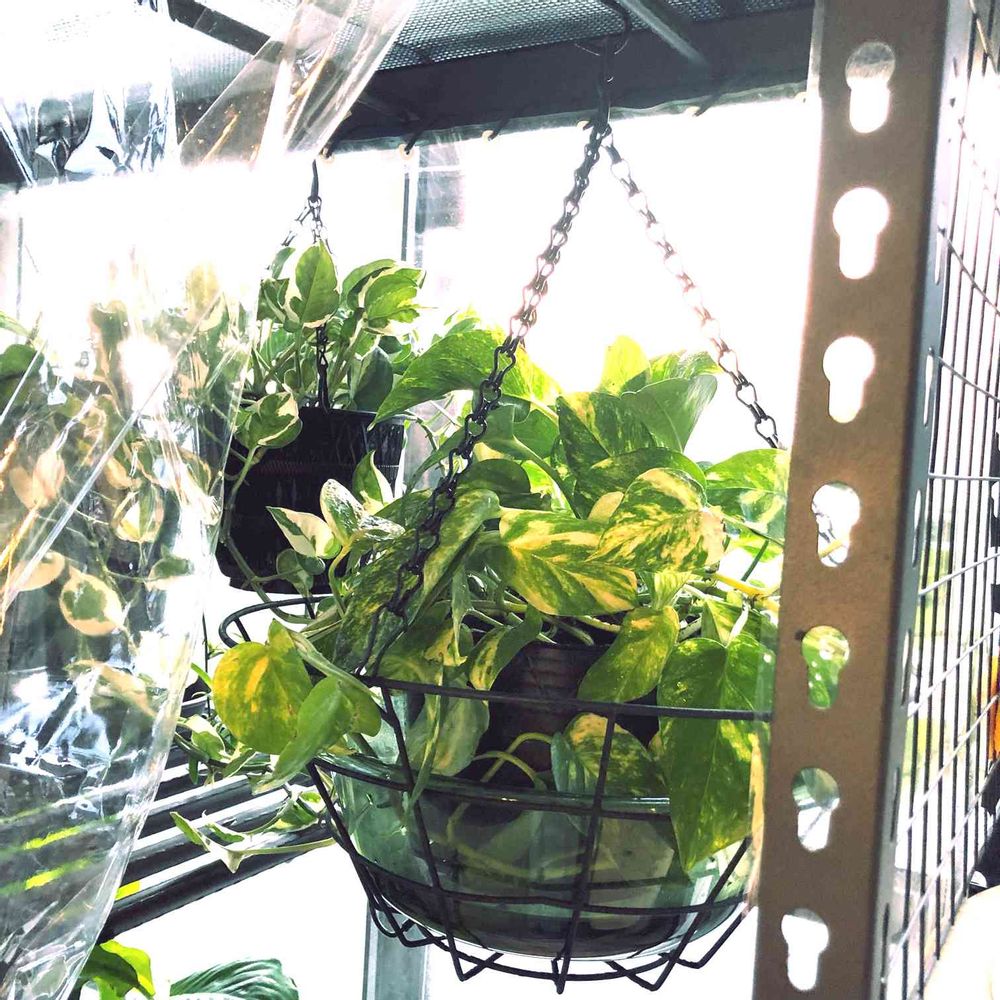 ポトスたちの温室準備で、洗面器にみずをたっぷりいれて霧吹きをたくさん出来るように吊るしました。