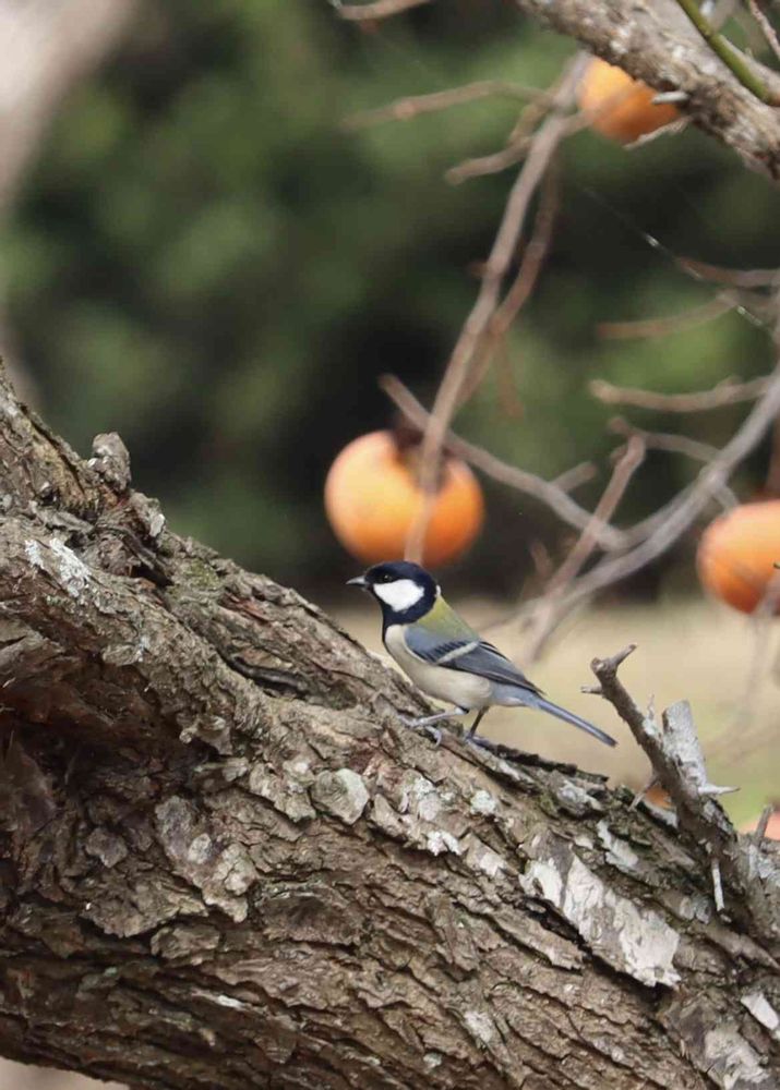 柿が入って秋を感じる可愛いシジュウカラですね😍