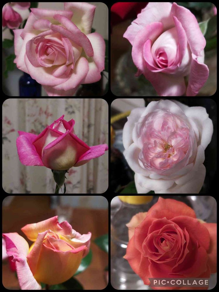 ほかにも5種類、摘み取って花瓶に生けているバラがある。