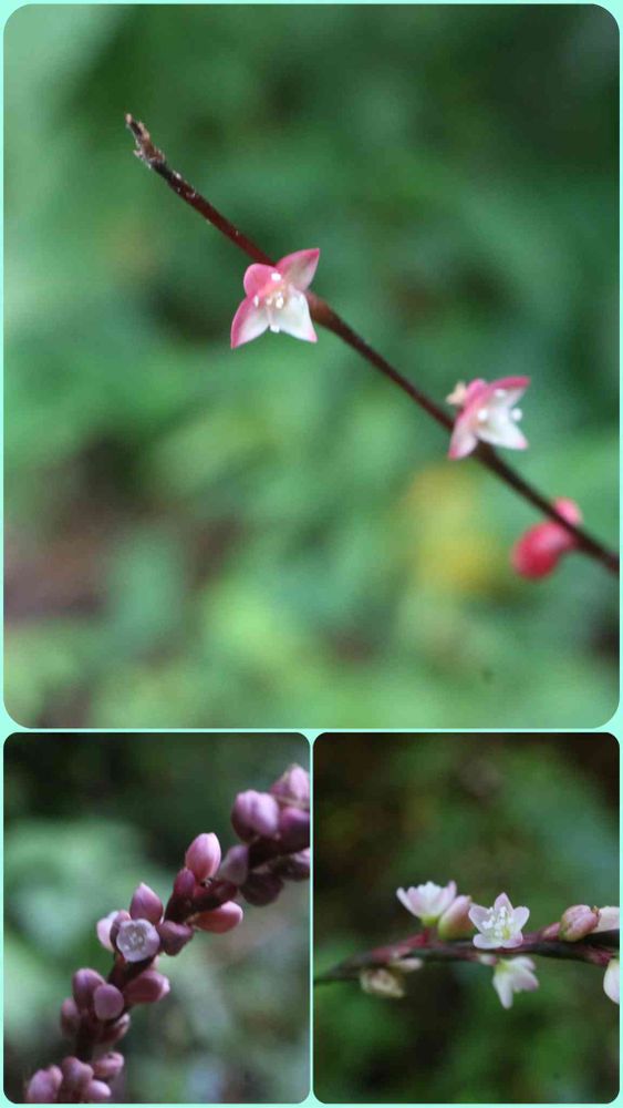 ⬆️ミズヒキ(水引)タデ科イヌタデ属。和名は紅白に見える花序が水引に似ていることに由来する。白花はギンミズヒキ(銀水引)です。どちらも普通に有る山野草です。↙️ イヌタデ(犬蓼)、↘️ ハナタデ(花蓼)です。