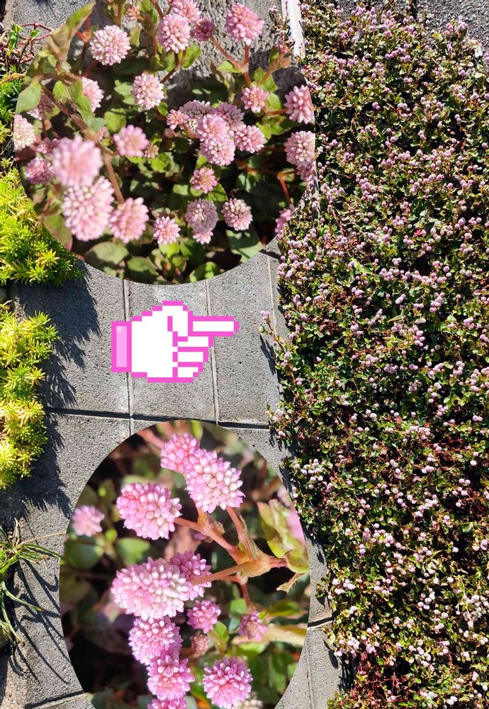 職場の中庭(半分雑草半分芝生)、この花が生えている所にはヨモギ等が蔓延っていないので、もしかして雑草対策に使えるのでは?ヨモギを一部抜いてあのピンクの花(名前がわからなかった)を移植してみる?右下から左上に一部を移すだけならダダだし(笑)