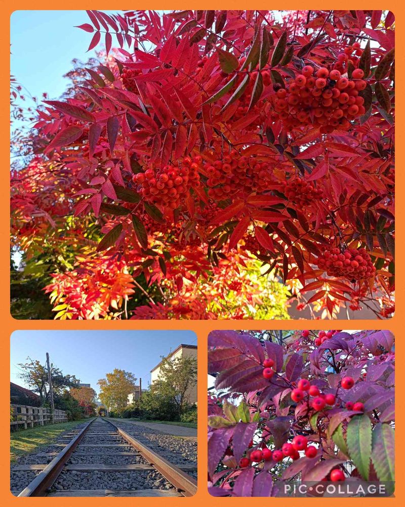 線路沿いのナナカマドが色づきとても綺麗でした✨