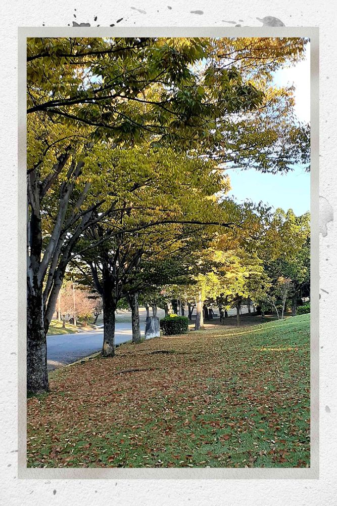 芝生の緑💚と茶色の落葉🍂のグラデーションが素敵です…実際はもっと綺麗‼️