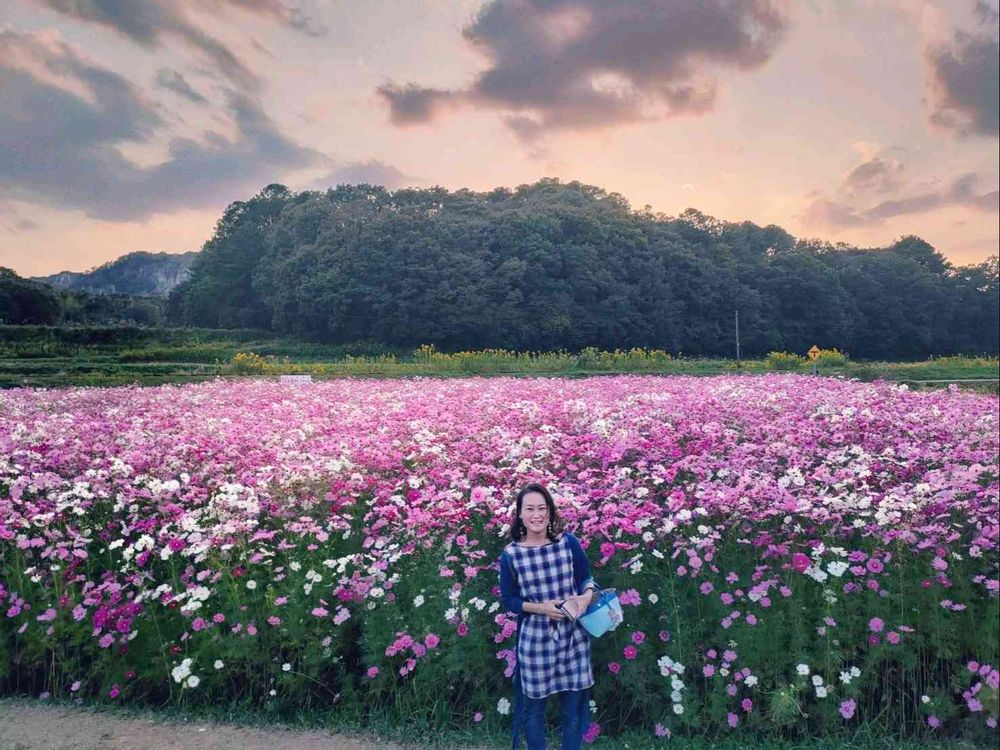 キレイなコスモス畑ですね😃 まほこさんも、負けじと映えてますよ✨