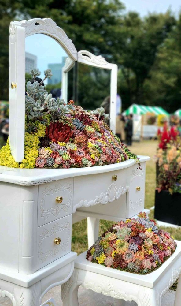 多肉植物の寄せ植えは素晴らしくて、人気でたくさんの方が撮影していました😊🌱