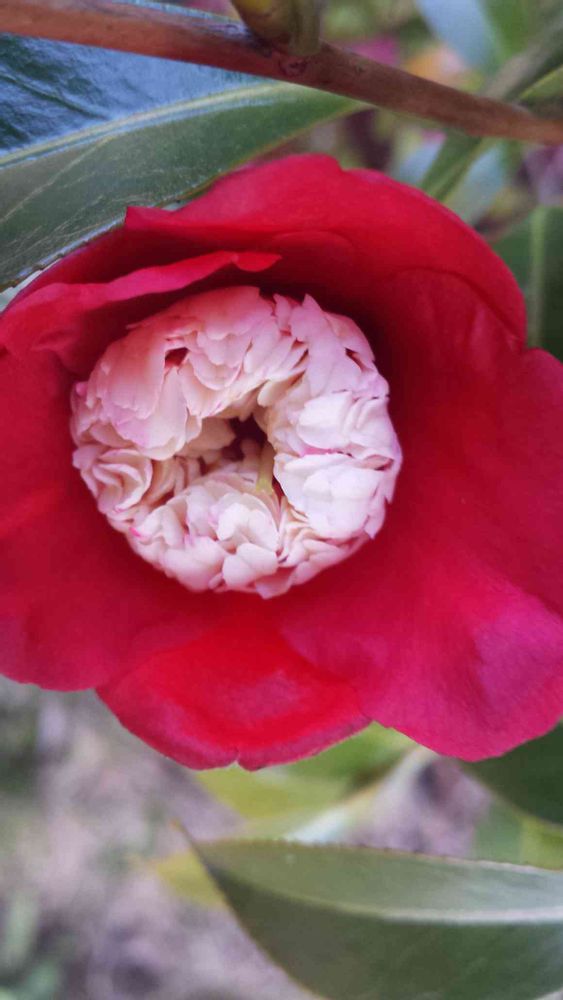 椿 卜伴、一目惚れして買ったツバキも毎年咲いてくれます。花芯が白くて珍しい種類のようです
