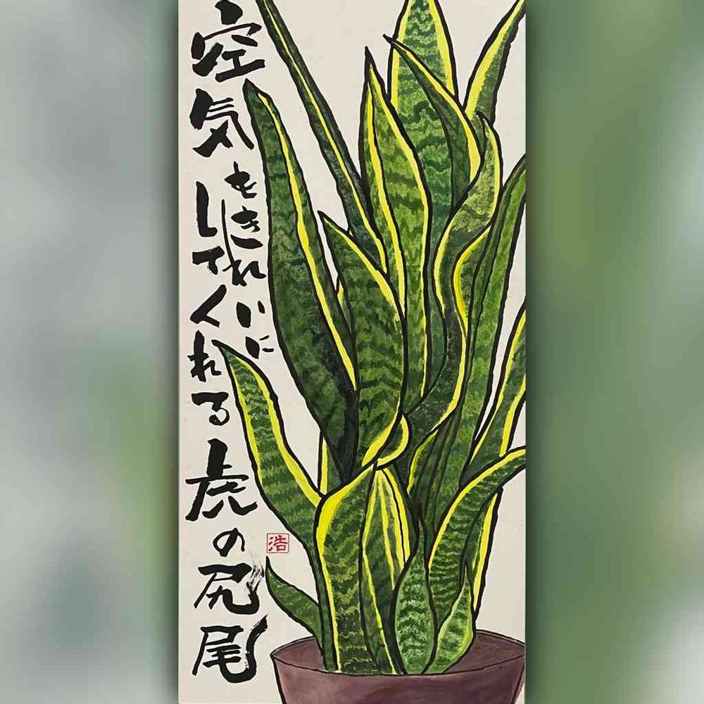 今日から3日間(10/28〜10/30)開催されている泉佐野市民展に出品した絵手紙作品(90㌢×45㌢)です。サンセベリアを描きました。