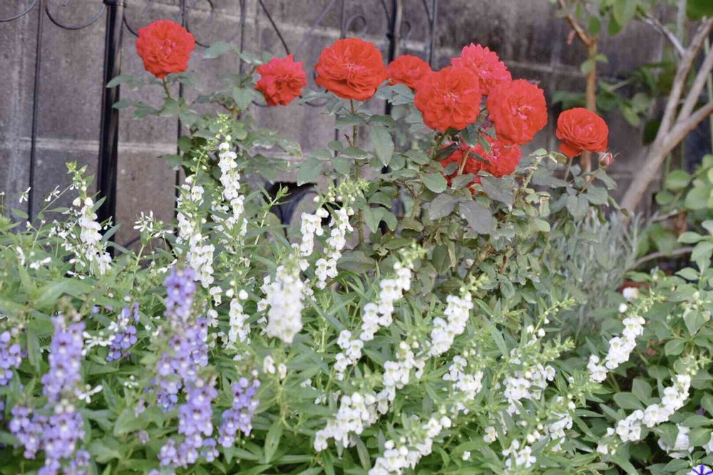 花壇に植えられたバラマイローズとアンゲロニアの組み合わせがお気に入りです💕✨