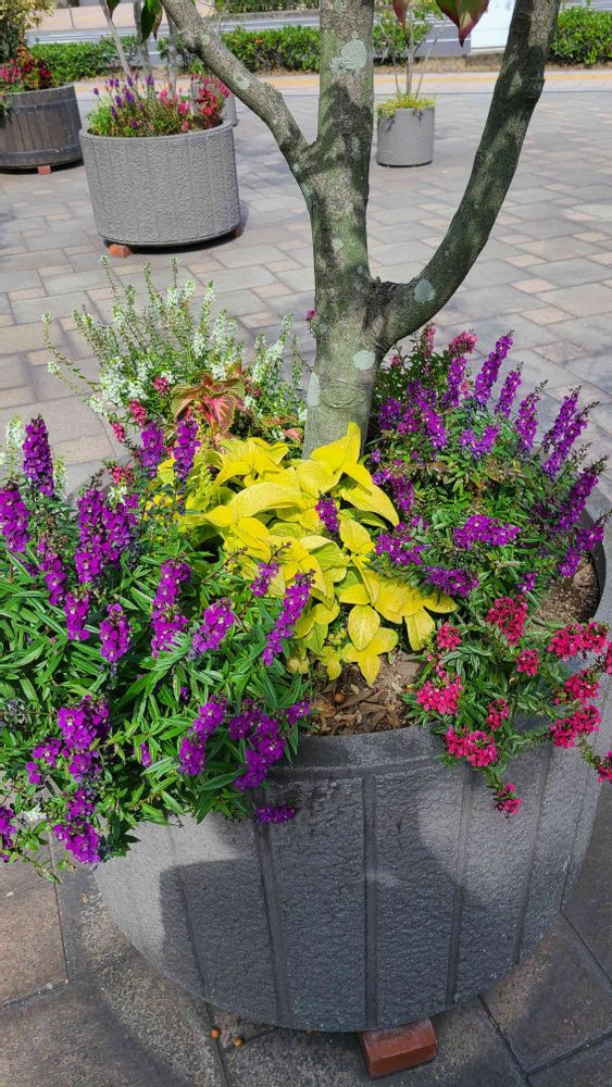 宝山ホールの道路向かい中央公園にある地下駐車場🅿️「セナ602」の出入口を出てすぐの所にあったコンクリート花鉢。綺麗に咲いていた✨💖