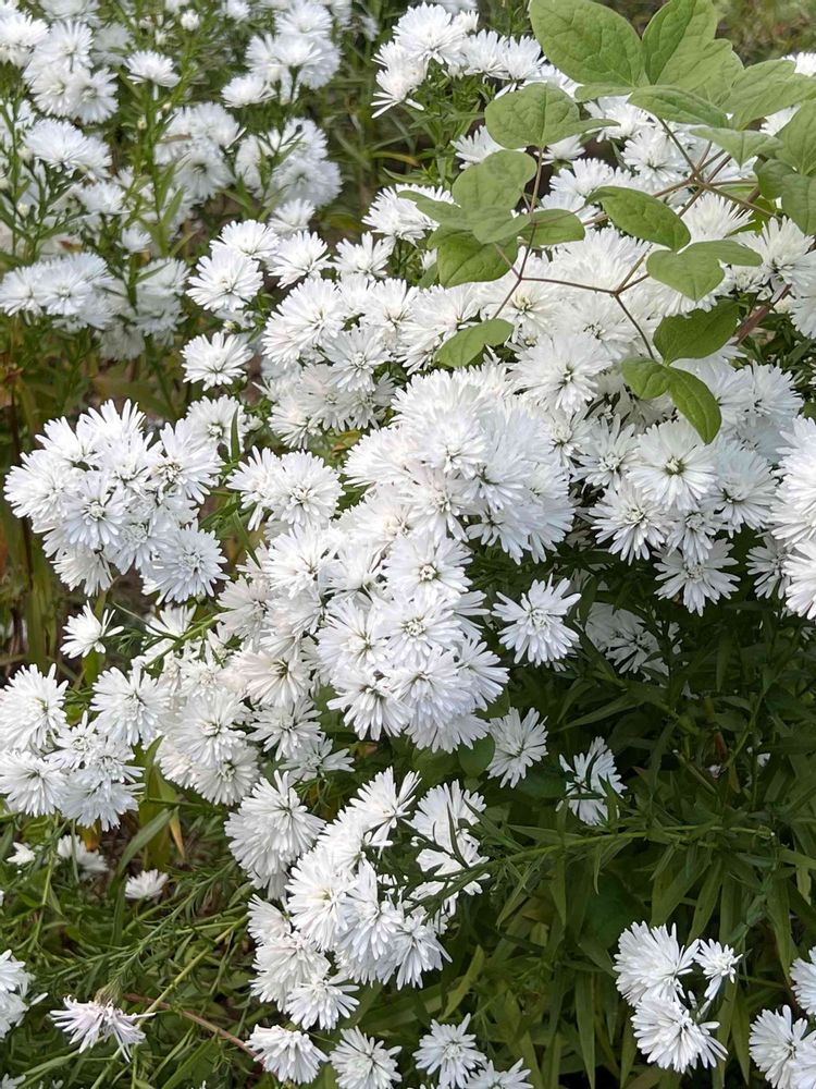 アスター、キラキラと輝いて綺麗です💕珍しく白に出会いました〜