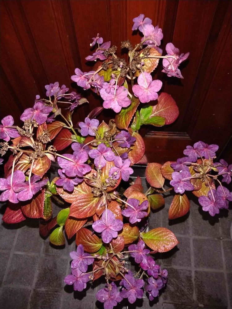 鉢植えの紫陽花の紅葉、私は初めて見ました😀
