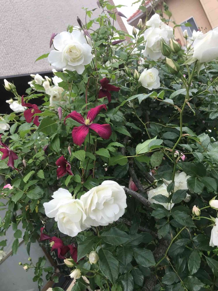バラとクレマチスをすてきに絡ませてる雑誌を見て試すものの言うこと聞いてくれないのよね(*´Д`*)