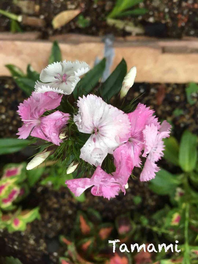こんばんは😃3月に道の駅で購入したナデシコが咲きました💗咲き始めは白くてだんだんピンクになっていきます💗