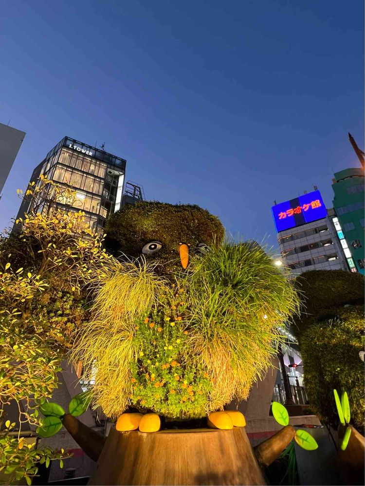 いけぶくろのふくろぅだそうです。巨大なフクロウ番いと子フクロウと3羽、駅前にデーン。