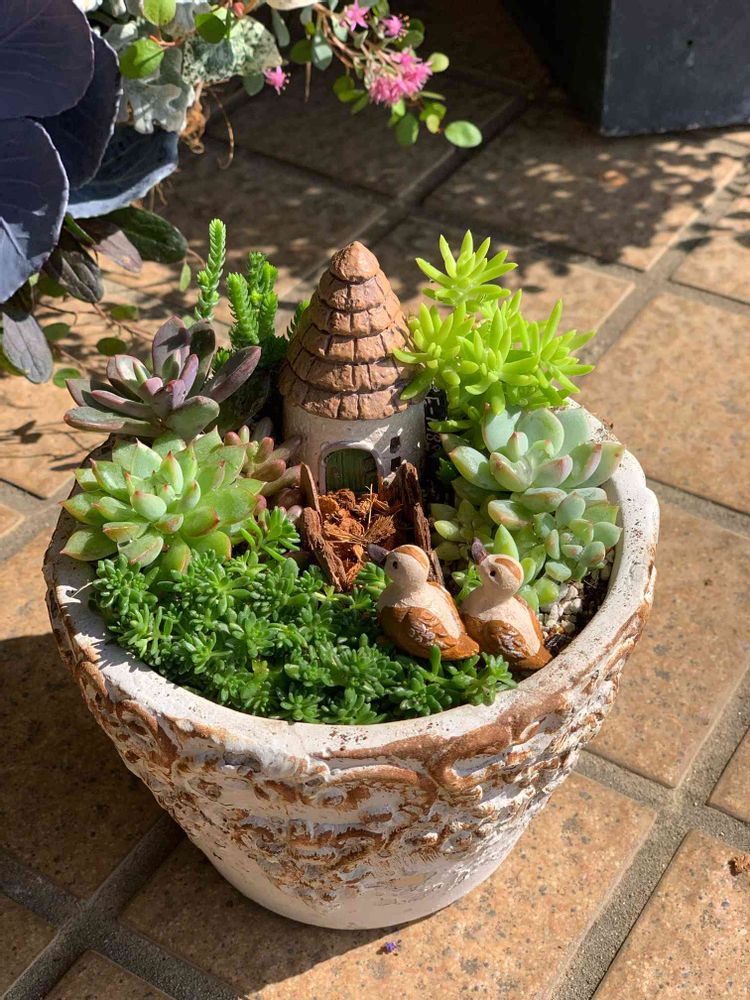 多肉植物の寄せ植え教室も生徒様募集中です♪ 多肉とセダムとミニチュアの小物を使って箱庭作ります🌿