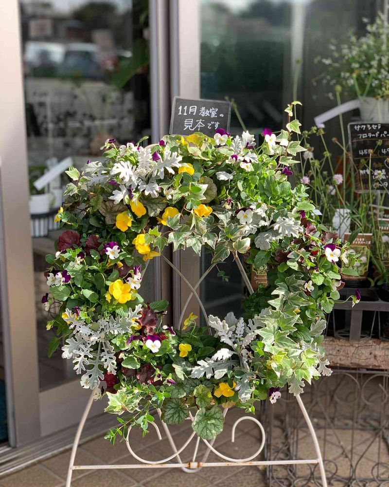 💐ビオラ&リーフを使ったギャザリングリース💐です