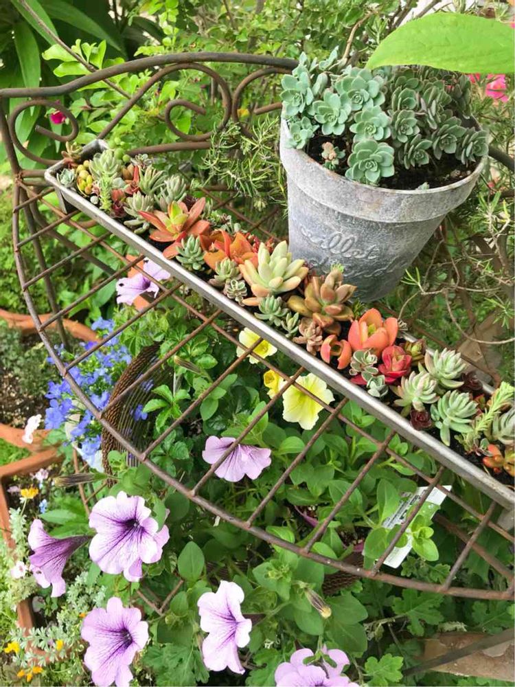 多肉もペチュニアも配置もステキです💖水やりに技術がいりそう?