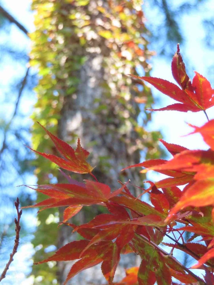 青空とツタを背景に、色付き始めたモミジ🍁が素敵でした。