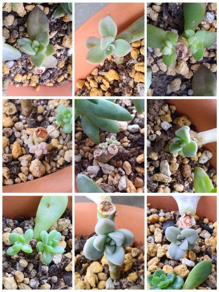 ヒョロガリさんと✂️した子を纏めた鉢ですが、毎日見ても飽きません😊🌱(どこかが違ってて楽しい😆💕)