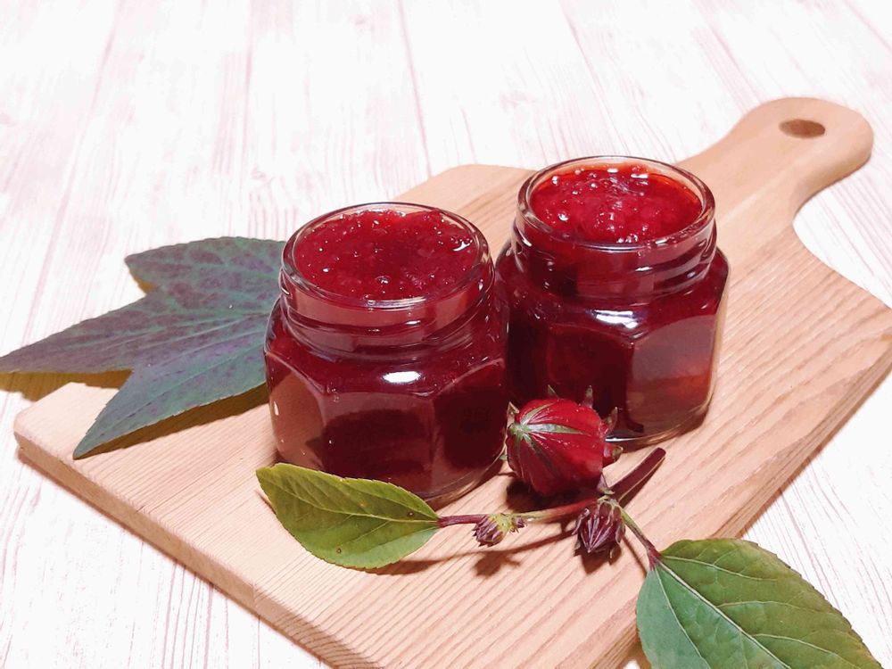 とっても鮮やかな色のジャム美味しそう〜😋💞ローゼルは酸味があるのかな🙄💕ゴロゴロの実が入ってると食感も良いですね🎶