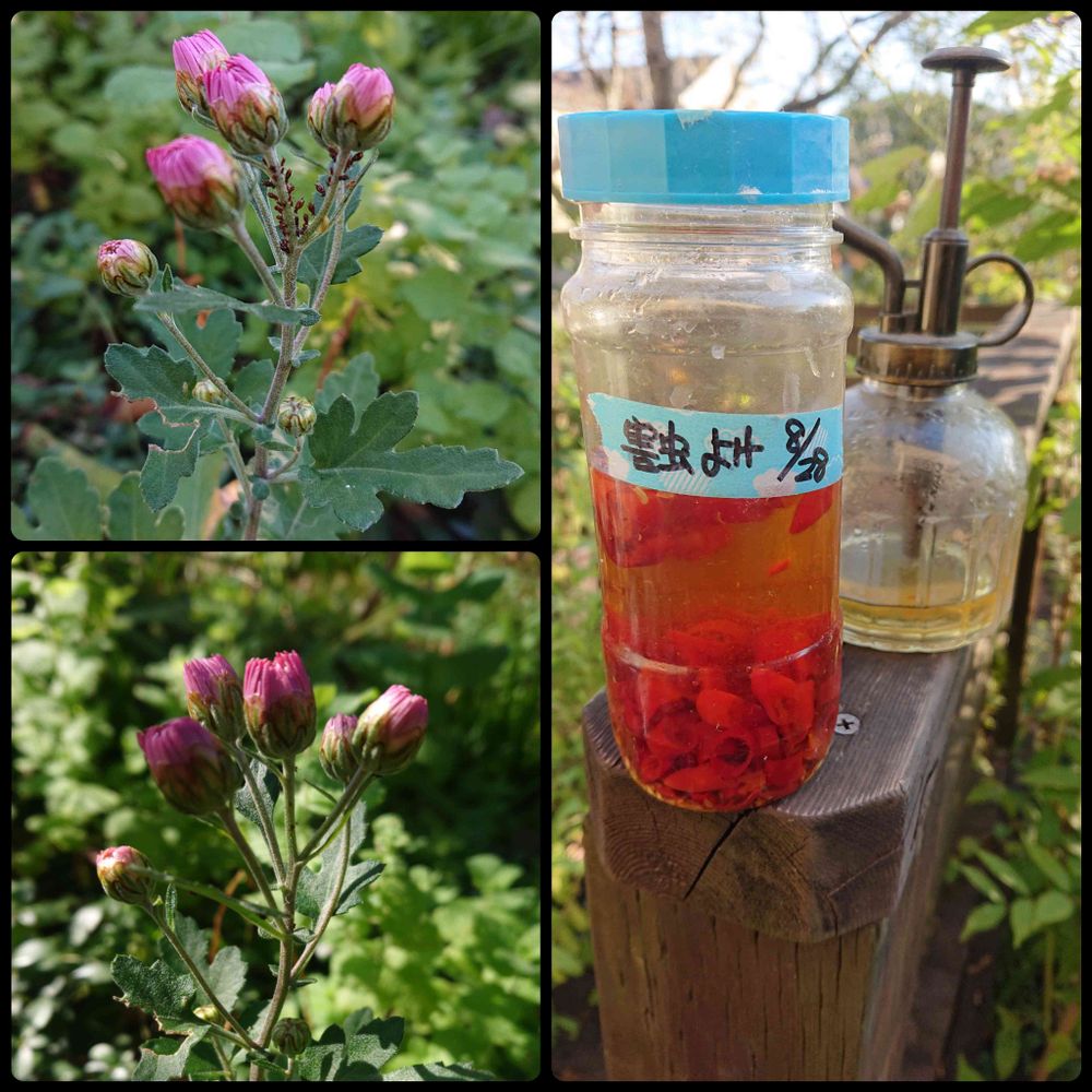 以前、花友さんに教えていただき作っておいた唐辛子入り焼酎の害虫よけを昨日、スプレーしました👍