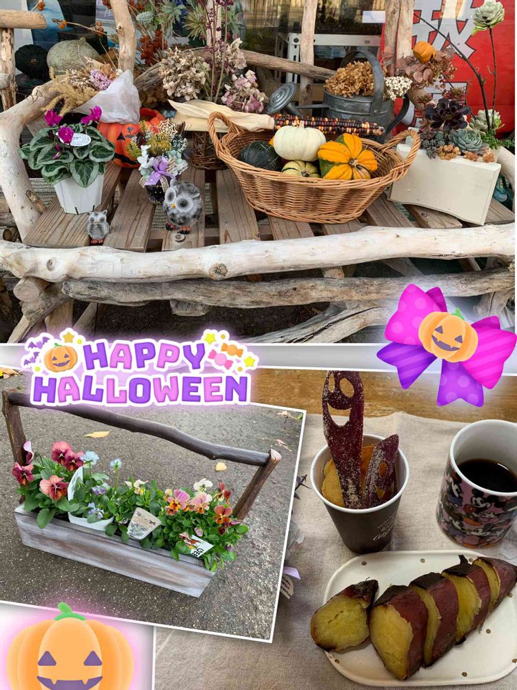 イベントで購入した焼き芋🍠とオバケチップス👻ハロウィン鉢アレンジ🦇